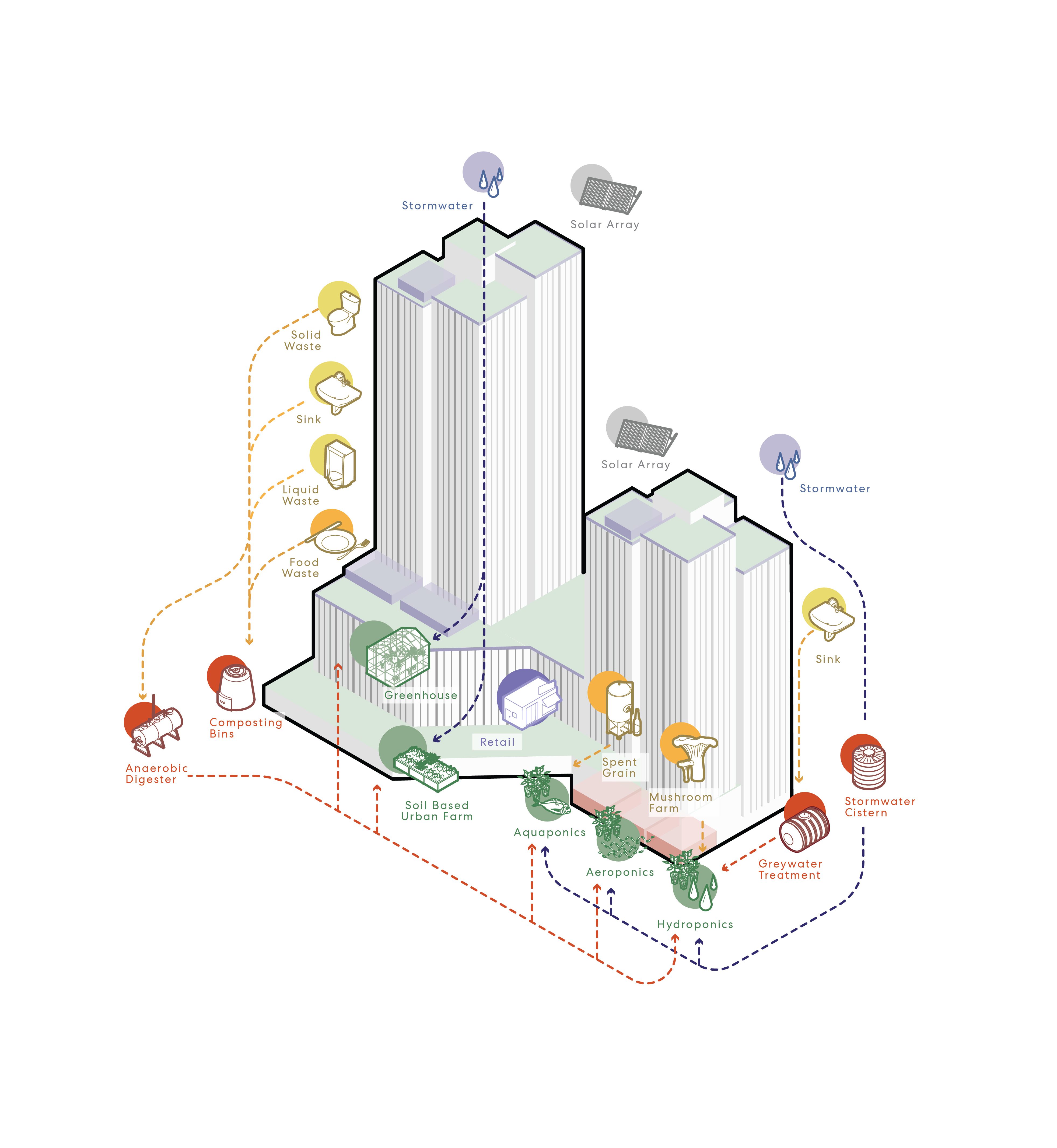 Au cœur de la recherche se trouve la proposition selon laquelle les systèmes de production alimentaire devraient être compris comme des infrastructures urbaines essentielles. En requalifiant ces systèmes comme une catégorie d’actifs d’infrastructure, le projet élargit la manière dont la profession architecturale définit la performance, la valeur et la responsabilité dans l’environnement bâti.
