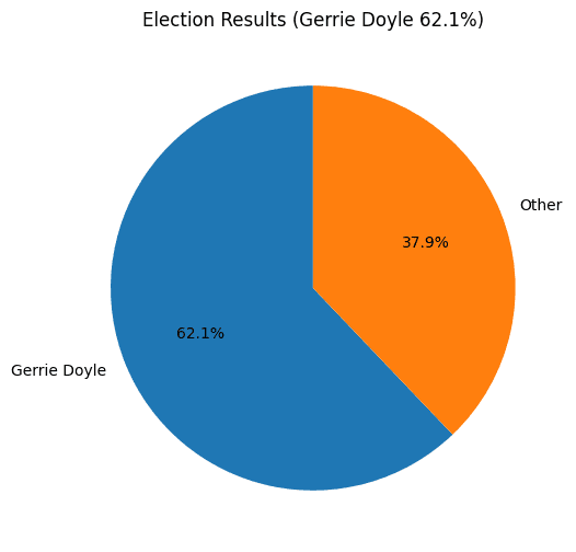 Of the ballots cast, 123 votes were in favour of Gerrie Doyle, representing 62.1 percent of votes cast and 15.6 percent of the total eligible electorate.