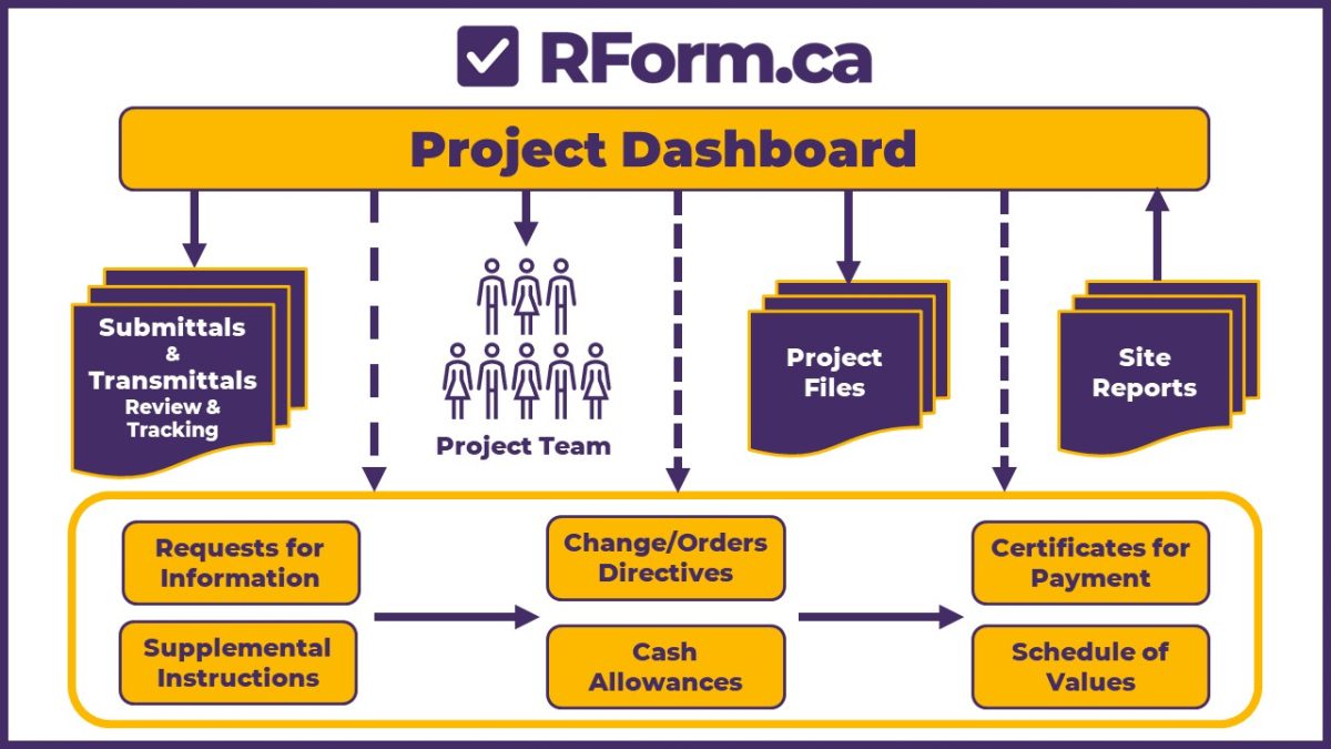 RForm offers a unique Project-Based Pricing package that includes everything from unlimited users and project files to a full suite of project forms (see below) designed around Canadian Construction standards.