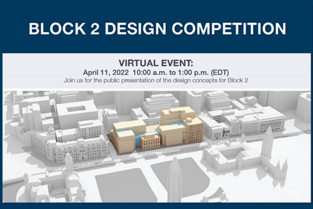 In partnership with Public Services and Procurement Canada (PSPC), the Royal Architectural Institute of Canada (RAIC) has endorsed the design competition for the renewal of Block 2 and has designated professional advisors to oversee the overall competition process, which ended with the announcement of the winning design concept on May 16, 2022. The RAIC’s contributions included: