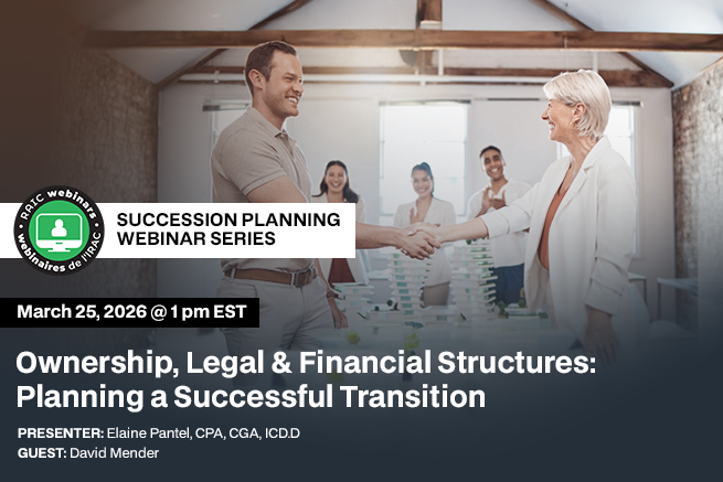 Ownership, Legal & Financial Structures: Planning a Successful Transition Date: March 25, 2026 @ 1:00pm EST Register here |