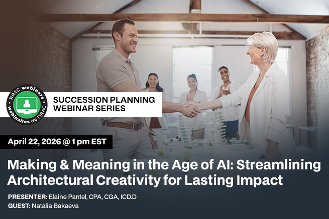 This series was developed based on ongoing collaboration with leaders of architectural practices, alongside feedback from past RAIC and Ontario Association of Architects (OAA) webinars on succession and firm value. These discussions underscored both the urgency and strong demand for structured dialogue on transition planning. To broaden these perspectives, the series lead has engaged colleagues with specialized expertise in leadership, ownership structures, and technology in the architecture industry. Together, the series fosters meaningful dialogue and delivers practical frameworks that directly address the needs expressed by firm leaders.