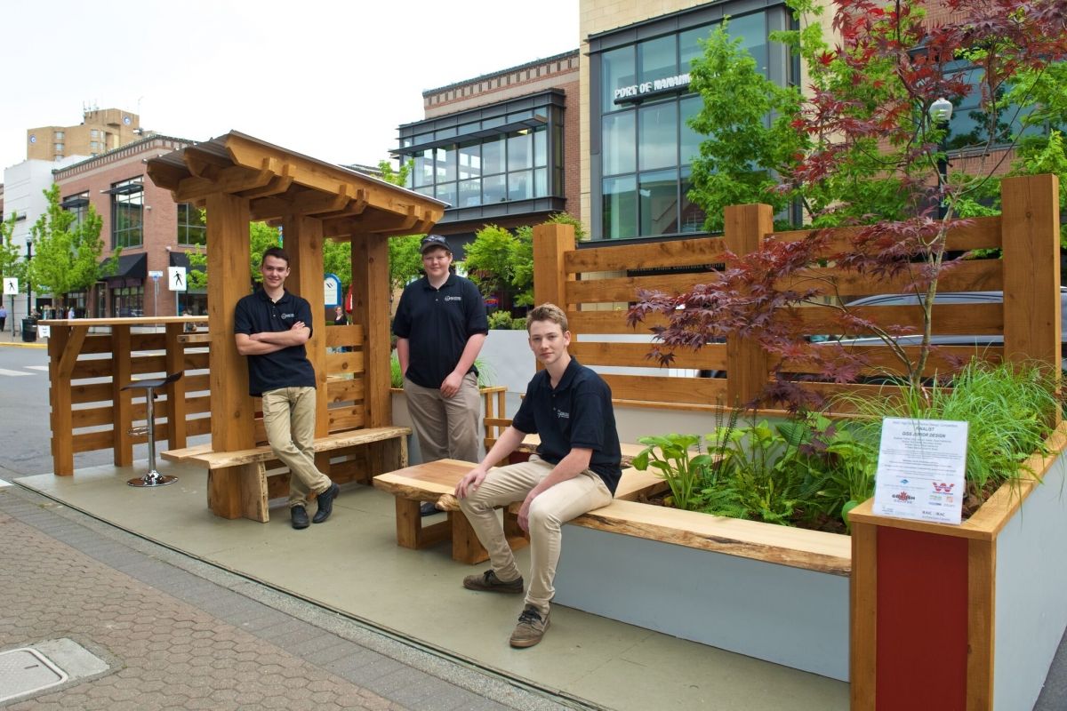 “I can’t tell you how impressed I was with the work of the students who designed and created the parklets,” said City of Nanaimo Mayor Bill McKay. “I’m just sorry that Nanaimo couldn’t have kept them. These intimate seating areas used in the great weather connect the indoors to the outdoors, the buildings to the street, and promote connectivity between people.”